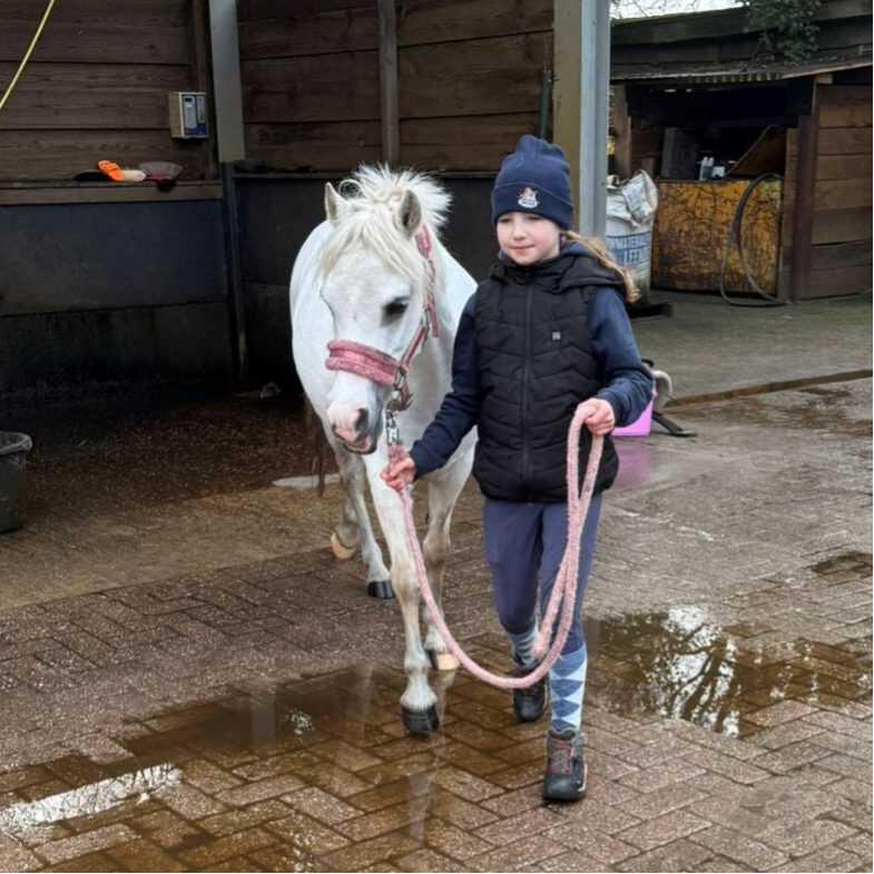 Het wordt niet gereden tijdens deze cursus. De nadruk ligt op benaderen van onze paarden/pony's, uit stal halen, vastzetten, poetsen, opzadelen, naar de wei brengen zodat de ruiters en ouders leren in de veilig manier om met onze paarden/pony's te omgaan.